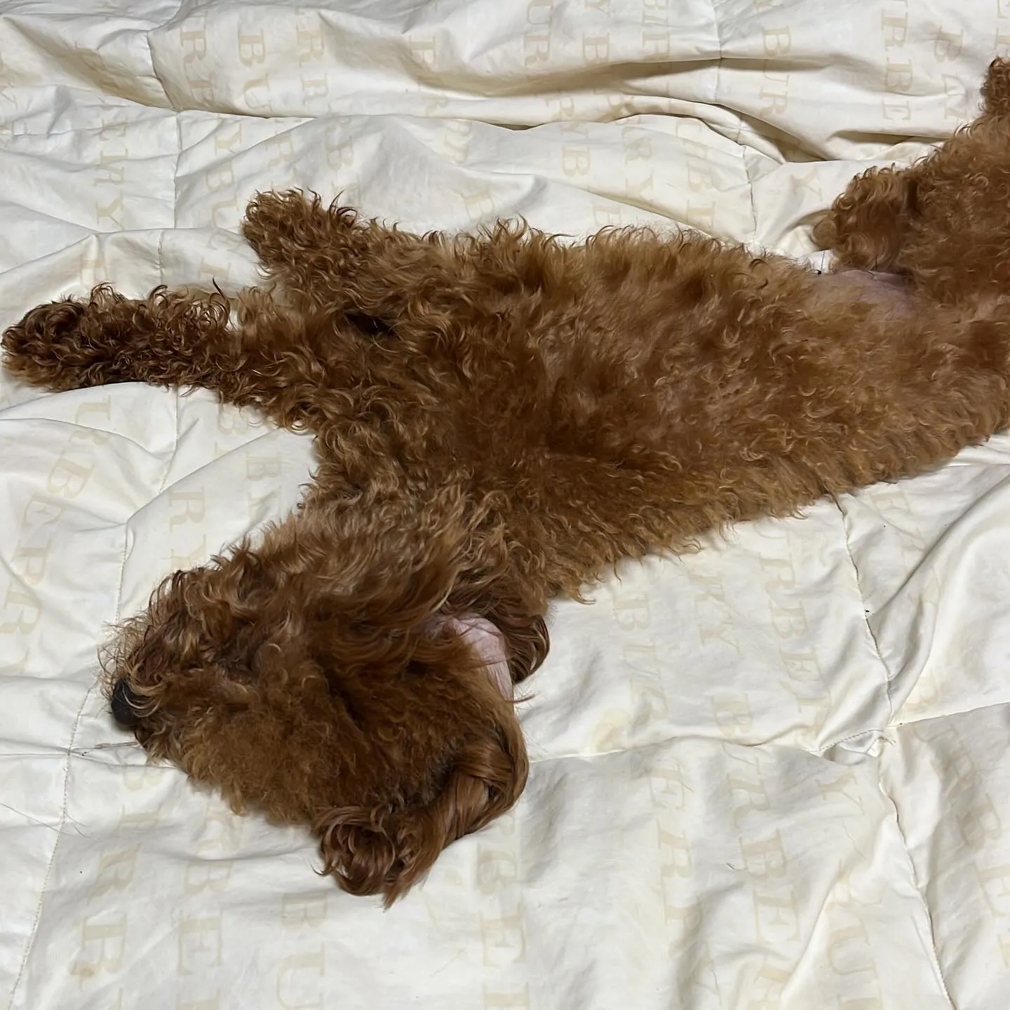 こんばんは♪ トイプードルのリリーナさん😄 本日犬舎で仔犬のタルトくんと遊んで お疲れの様です😂